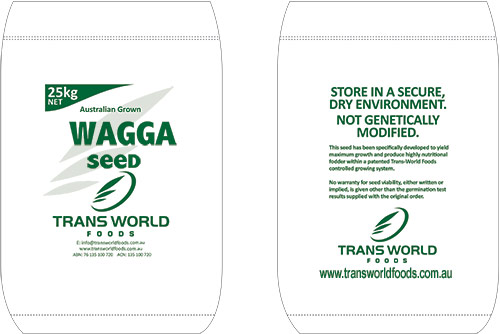 Our seed has been specifically developed to yield maximum growth and produce highly nutritional fodder within the patented Trans-World Foods controlled growing system.Wagga Seed is our seed of choice for producing fodder because on sprouting it produceshigh quality, nutritious green fodder.